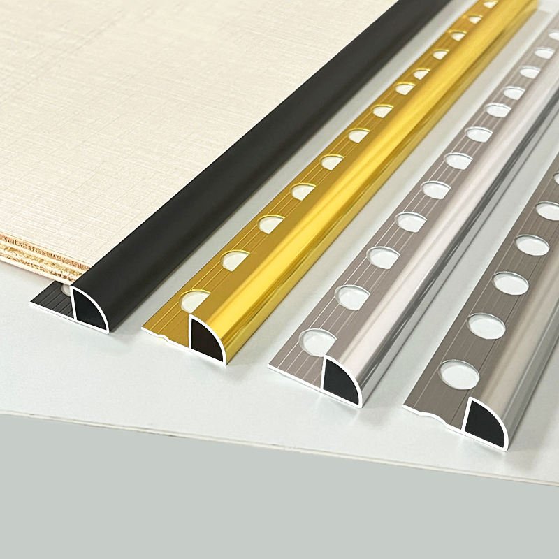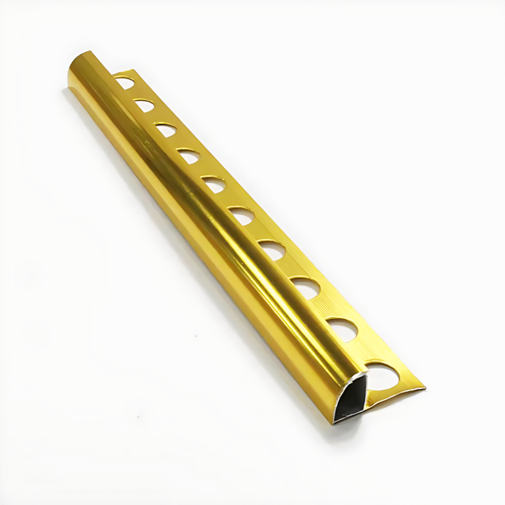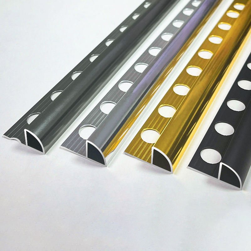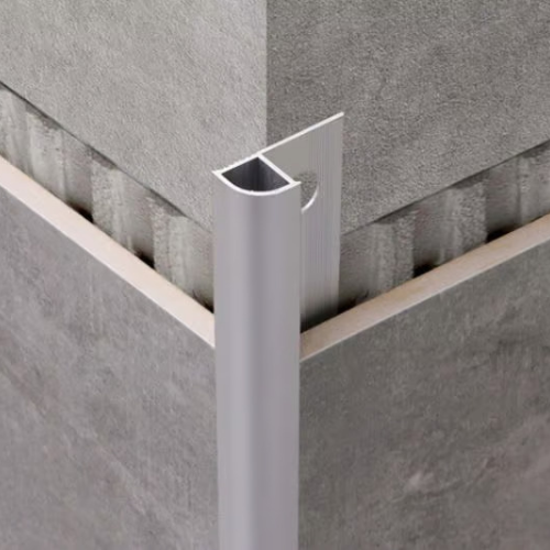 Round Edge Aluminum Tile Trim is a durable, curved-profile trim designed to protect exposed tile edges and prevent chipping. Made from extruded aluminum, it provides a clean, professional finish and smooth transition between surfaces. Available in various finishes like anodized, brushed, or powder-coated, it combines protection with stylish aesthetics.